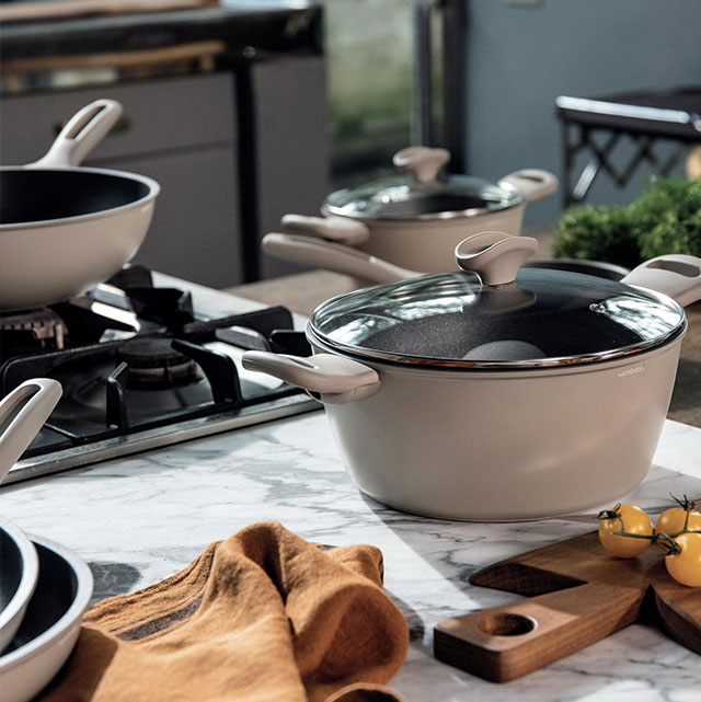 Qualità, design e funzionalità della collezione Silver Force di Sambonet, per il meglio delle tue ricette. Tecnologia Made in Italy di ultima generazione per una casseruola solida, dai bordi rinforzati e resistente a graffi, urti e ammaccature. L'antiaderenza preserva aromi e gusto, mentre il rivestimento minerale con ioni d'argento garantisce una protezione antibatterica efficace al 99,5%. Coperchio in vetro con valvola di sfiato e comodo pomello reggi cucchiaio.