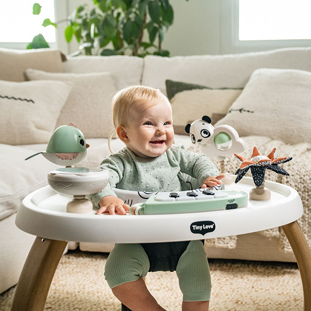 Lo Stationary Activity Center cresce con il tuo bambino e lo supporta nello sviluppo dalla nascita fino a 36 mesi con 5 modalità di utilizzo: pianoforte musicale per gioco a pancia in giù, centro attività, balance board per l'equilibrio del bambino, tavolo da gioco, tavolino e sgabello. Presenta 20 attività e 6 giochi amovibili. La seduta girevole a 360° permette al bambino di esplorare in sicurezza ogni lato del centro attività.