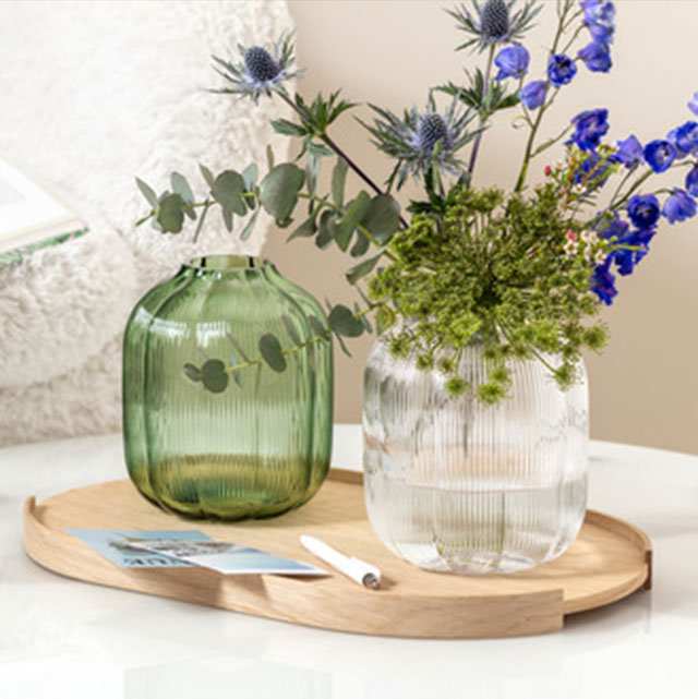 Con la loro armoniosa combinazione di forme fluide e colori di tendenza, questi vasi in vetro donano ad ogni stanza un'atmosfera accogliente e invitante. I vasi Fleur stupiscono per la loro sagoma panciuta e le colorazioni delicate che li rendono un elegante richiamo visivo. Questo vaso è l'ideale per creare bellissime composizioni floreali e un'atmosfera gradevole.