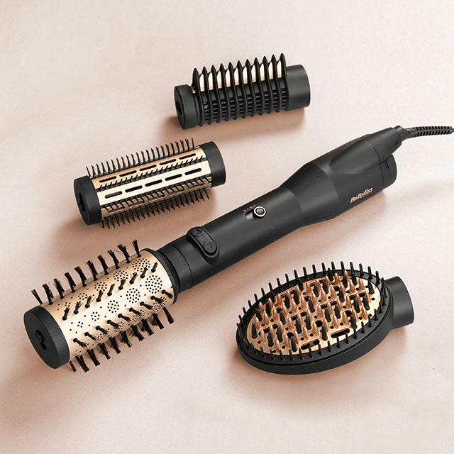 La spazzola rotante Big Hair Luxe di BaByliss è dotata di 4 accessori intercambiabili con rivestimento in ceramica. È ideale per asciugare, modellare, lisciare e dare volume ai capelli. La funzione ionica anti-crespo rende i capelli morbidi e setosi mentre l'innovativo design permette al flusso d'aria di essere perfettamente uniforme lungo la superficie di ogni accessorio.