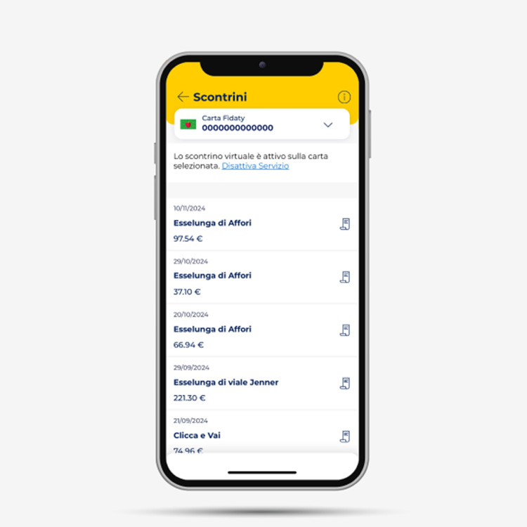 Non sai più cosa fartene dei lunghi scontrini cartacei? Attiva il servizio e scegli di riceverne una versione ridotta: per i successivi tre mesi potrai consultare lo scontrino completo sulla tua App.
